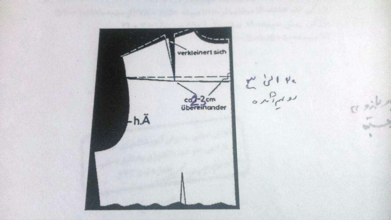 9:اگر شخص چاق با سینه و کارور گوشتی، شکم بر آمده هم داشت علاوه بر تغییرات مرحله 8 از انتهای ساسون سرشانه ونوک سینه، برشی روی خط ساسون زیر سینه می دهیم تا روی شکم هم فضا ایجاد شود و از کشش لباس و بالا پریدن پیش لباس جلوگیری می شود.