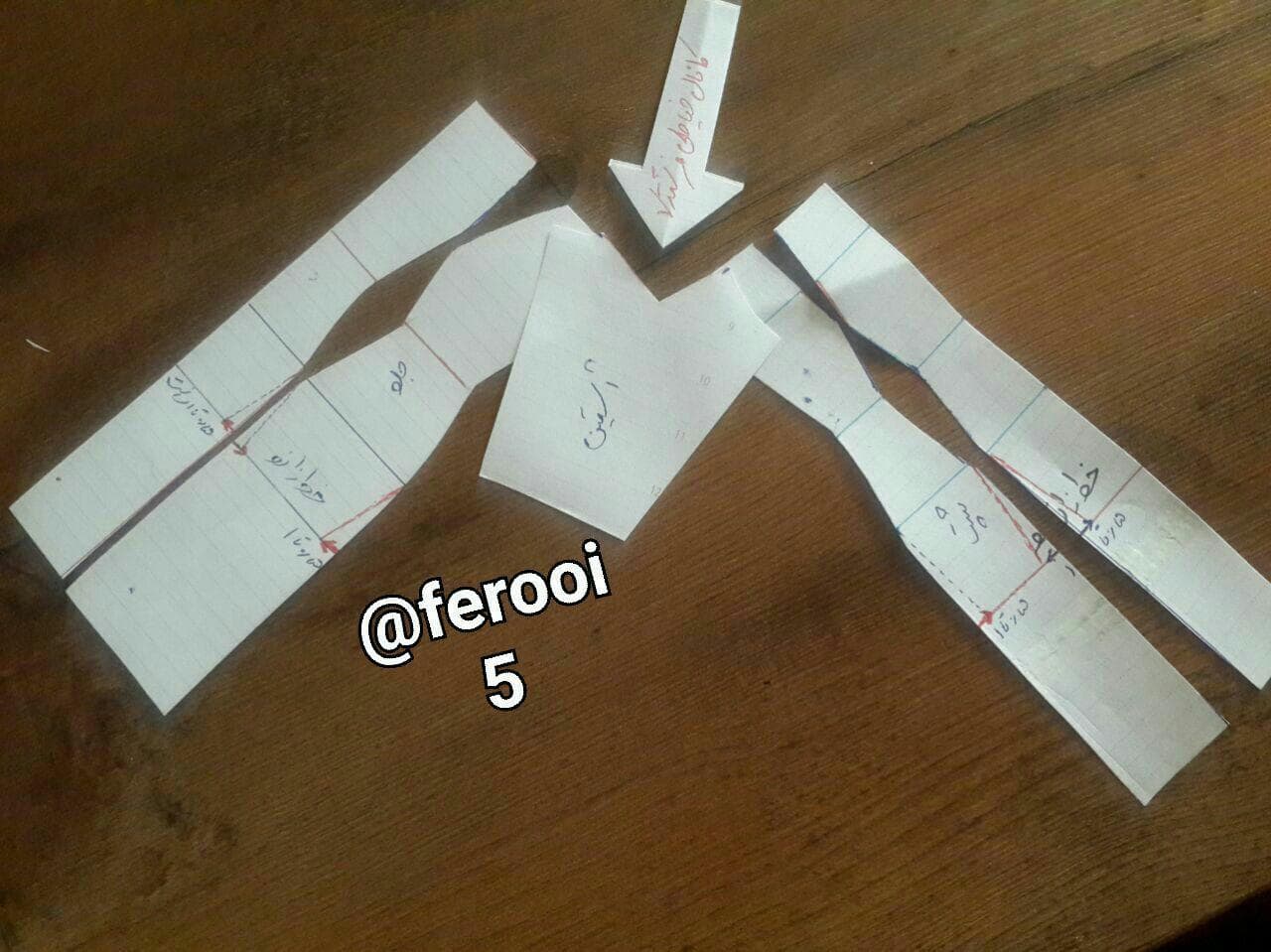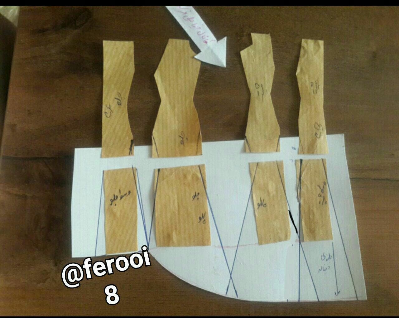 کمی این الگوی طراحی شده را اصلاح می کنیم. با توجه به بلندی متناسب با قد فرد و اندازه های دلخواه، قسمت نوک تیز را بالاتر یا پایین تر می بریم.