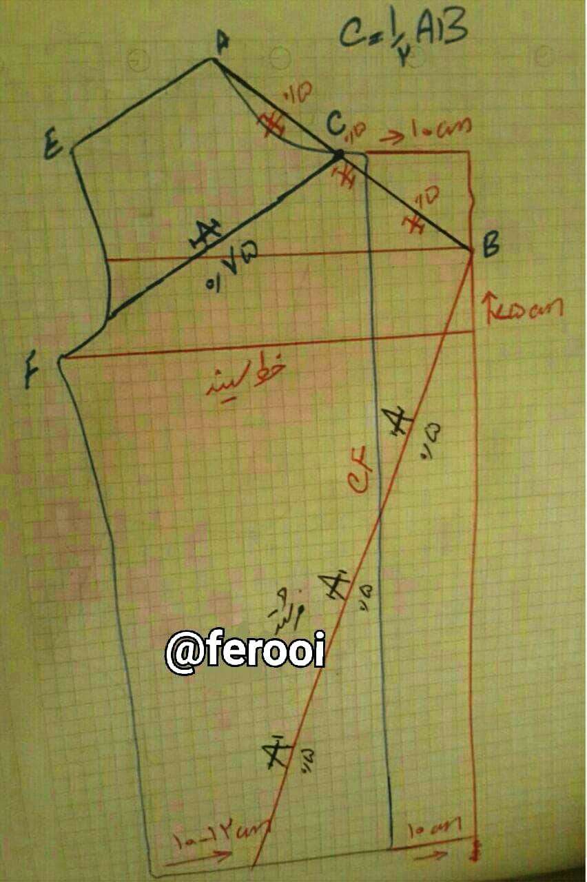 برای این مدل مانتو جلو باز ابتدا الگوی اولیه را با توجه به متد کاری خودتان رسم کنید و ادامه کار را مرحله به مرحله با الگو پیش بروید.