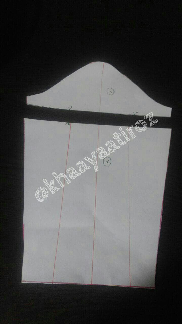 الگوی اولیه را بکشید لقی یقه را یک و نیم سانت ببندید.