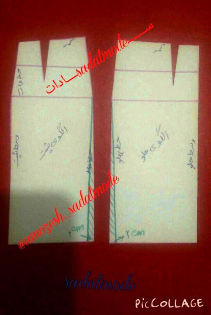 قسمت هاشور خورده قیچی شده و در خط پهلو و روی خط باسن بزرگ اگر تیزی در الگو ایجاد شده باشد بر طرف می کنیم (ترمیم)