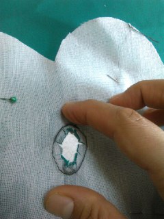 بعد از بر گرداندن تکه زیر پارچه سبز رنگ رو یعنی قلب باید به میز کار ثابت کنید با چسب یا سوزن