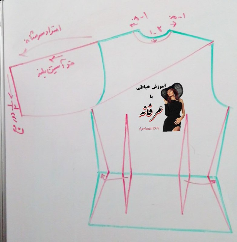 آستین رو طراحی کرده و قسمت نقطه چین شده کپی شود که الگوی آستین هست.