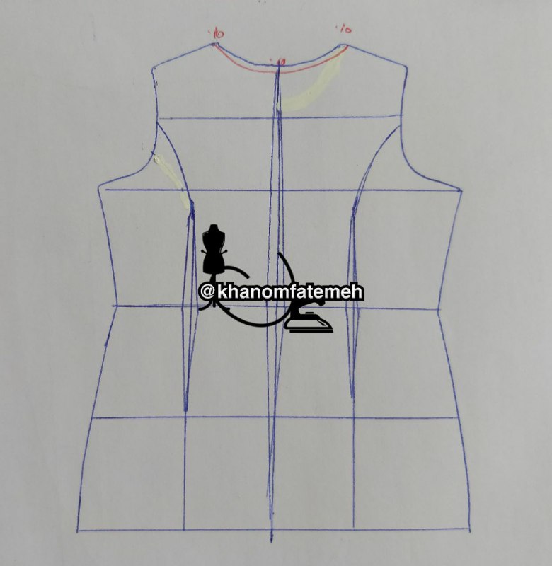 برای پشت از پهلو قرینه جلو ۵تا۷ سانت بالا رفته و به پهلو مقابل سر خط باسن وصل کنید .
